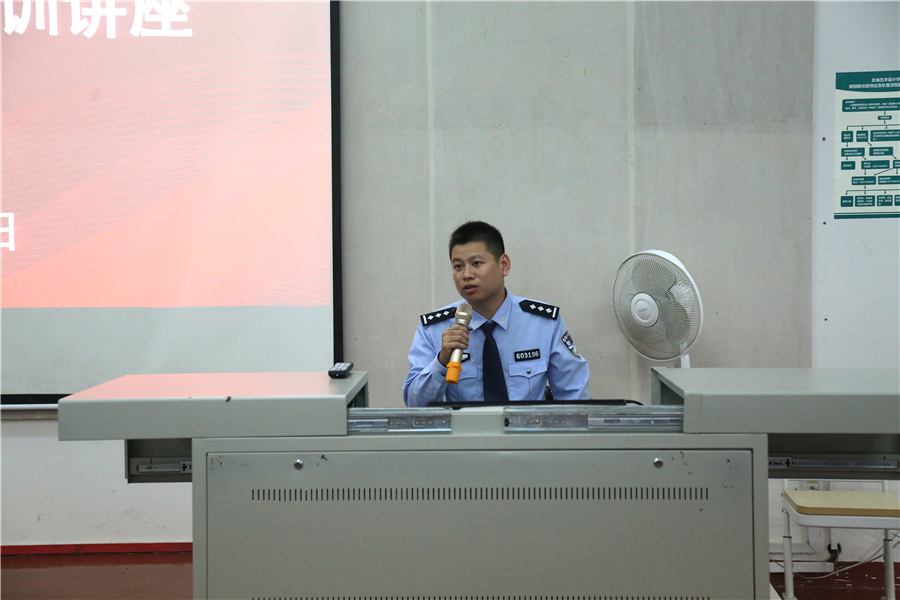 来自龙潭派出所的欧一平所长和韦雷磊副所长分别就近来发生虚假中奖信息、贷款信息、网络购物的新型诈骗案件,剖析了电信网络诈骗的常见形式、电信诈骗案件侦办难点、身边真实发生的典型案例、如何识别防范电信网络诈骗及受骗后的补救措施等方面,详细阐述了电信网络诈骗的原因以及防范电信网络诈骗的主要措施,帮助老师们向全体学生普及鉴别、预防、处理电信网络诈骗等相关知识。