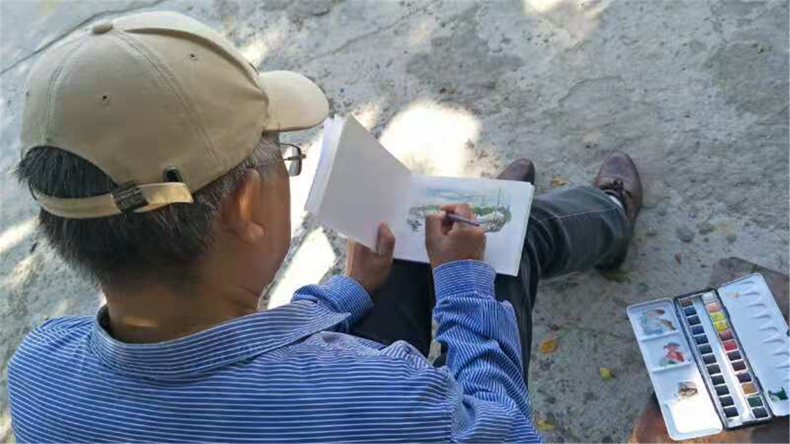 师生们每到一地,根据现场环境认真进行写生创作,相互观摩画作,交流作画心得,教授和老师对学生作品进行指导点评,帮助学生及时改进写生技巧和创作思路。