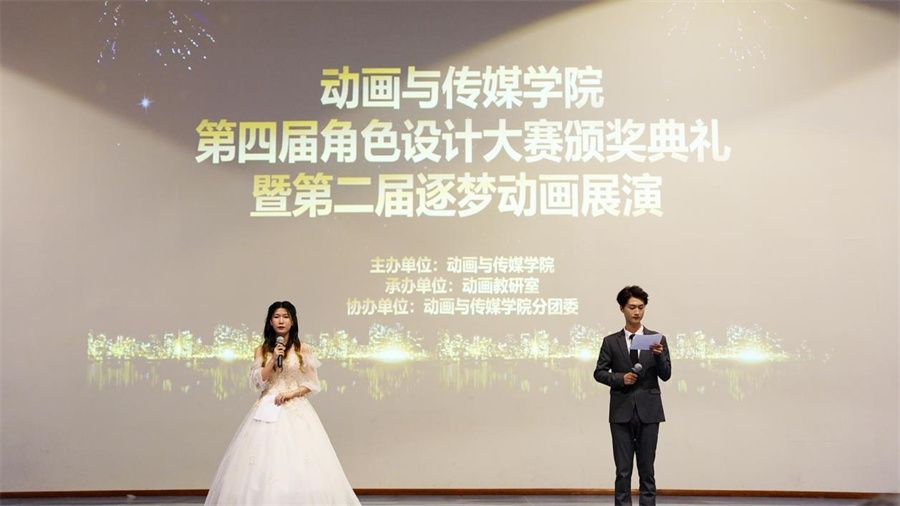 6月7日晚,由动画与传媒学院主办、动画教研室承办的第四届角色设计大赛颁奖仪式暨第二届“逐梦”动画展演活动在学校大礼堂顺利举行。学校领导张阳、卢新华、彭仁、韦静月、王斌、陶立阳出席仪式,马克思主义学院院长姜献生、动画与传媒学院300多名师生参加。