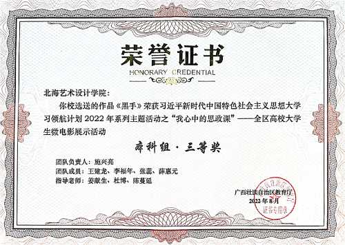经全区各高校初选推荐,自治区教育厅组织专家评审,认定了“我心中的思政课”全区高校大学生微电影展示活动优秀作品101部,其中,我校马克思主义学院、动画与传媒学院依托合作共建的思政课实践教学研习基地“红色影视创作室”,组织指导学生创作的作品《登台亮相》《黑手》分别获得“我心中的思政课”——全区高校大学生微电影展示活动本科组二等奖、三等奖。