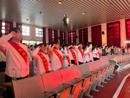 校团委副书记杨美琪带领新老团员共同重温入团誓词,铿锵的誓词在礼堂中激荡回响。