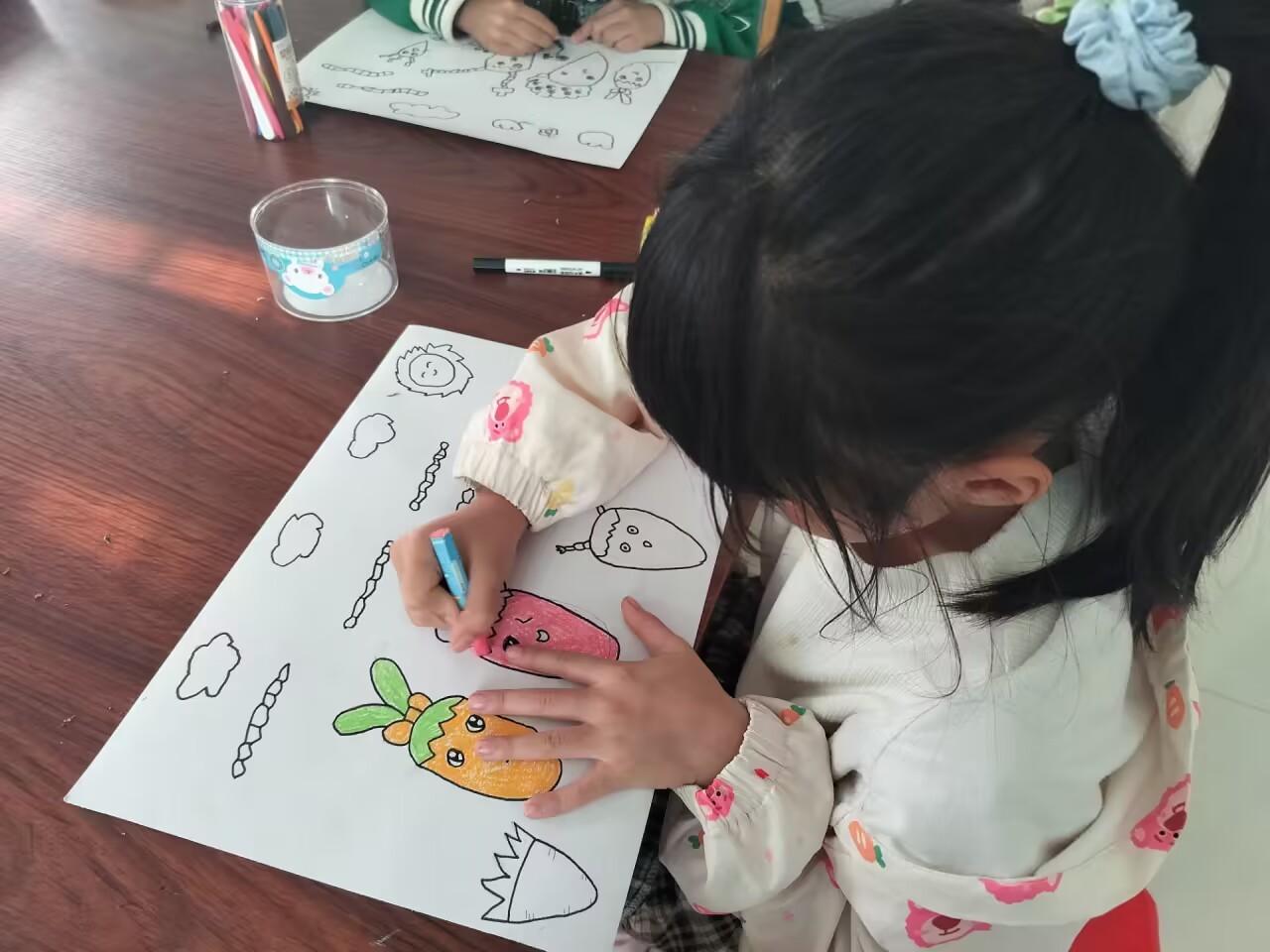 在北部湾社区,志愿者们将剪纸与绘画相结合,教会小朋友以多样性的思维去进行艺术创作。在课堂中,主教与支教密切合作,细心的关注每一位孩子的进度,积极帮助他们完成画作。孩子们是天真无邪的,是纯真的,是富有创造力的,所以你看,他们创造出来的“萝卜”都是可爱的,是具有丰富的想象力的!