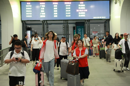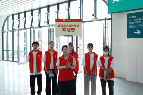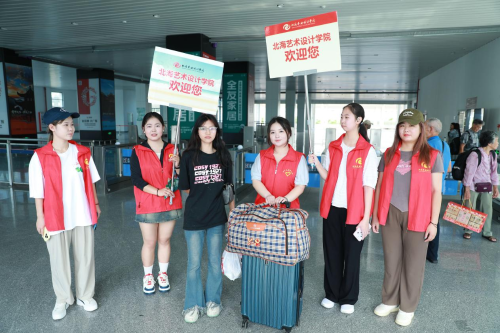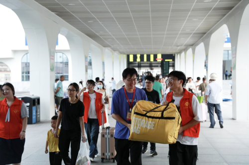 (志愿者在火车站点迎接新生)