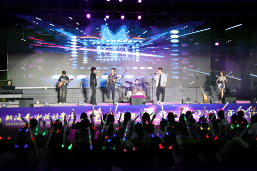 晚会伊始,沙蟹汁乐队用热情奔放的《阳光宅男》、《我相信》瞬间点燃全场气氛。强烈的节奏、激昂的旋律,让现场观众的目光瞬间聚焦舞台。学子们随着音乐不由自主地舞动,热烈的氛围迅速蔓延,为整场晚会奠定了欢快的基调。