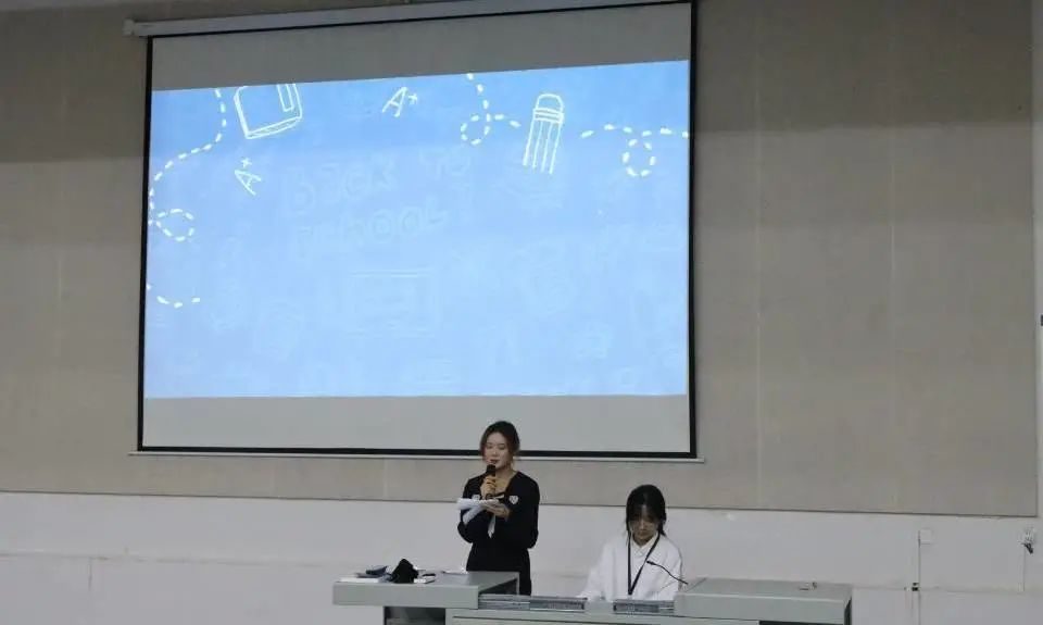 活动第五项:19、20级学长学姐上台进行分享学习经验。分别为:人文教育学院周可柔同学,动画传媒学院马妍同学。